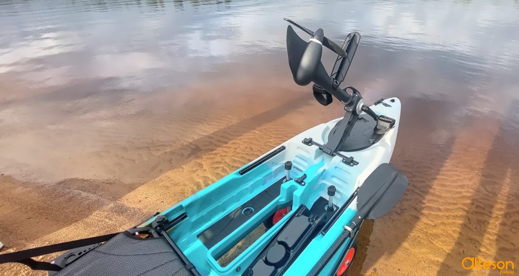 Kuljetusrullakon avulla kajakki on helppo kuljettaa lähelle rantaa. Kajakissa on paljon säilytystilaa, kiinnikkeitä ja paikat vapatelineille sekä kaikulaitteelle.